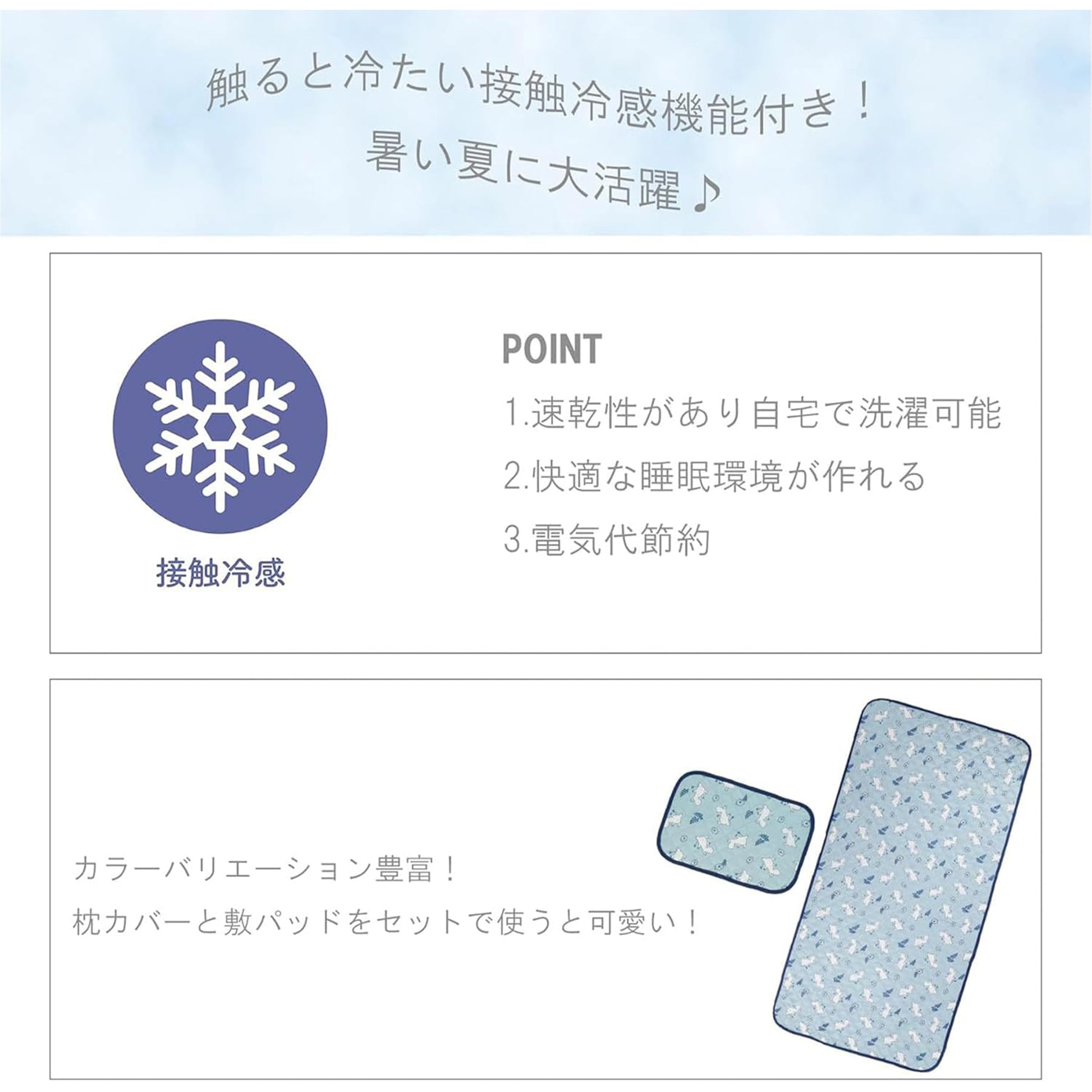 This Moomin cooling mattress is designed specifically for summer. The light blue "Moomin flower" pattern is dreamy and cute, allowing you to enjoy a cool and comfortable sleep even in hot weather.