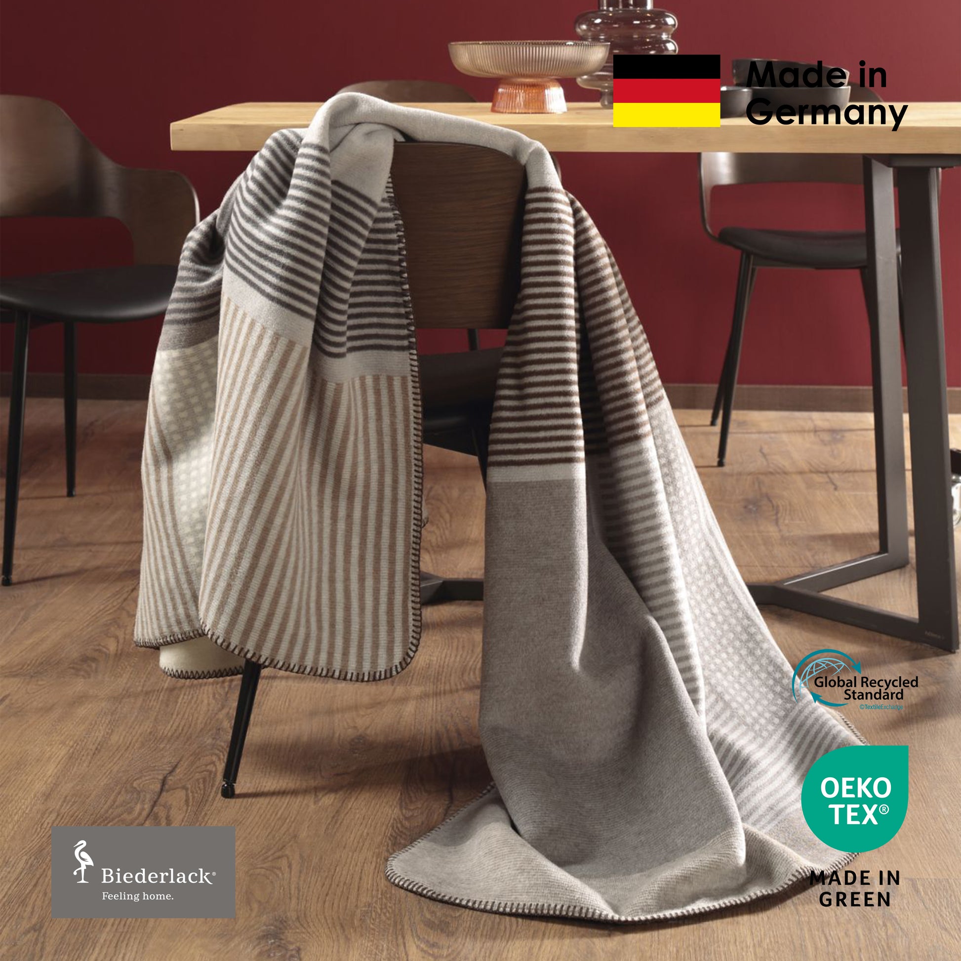 Like all our woven throws, "Maze" is produced at our facility in Greven, Germany. From weaving the yarn to sewing the edging and packaging, every step takes place in one location, allowing us to guarantee consistently high quality and responsible production.