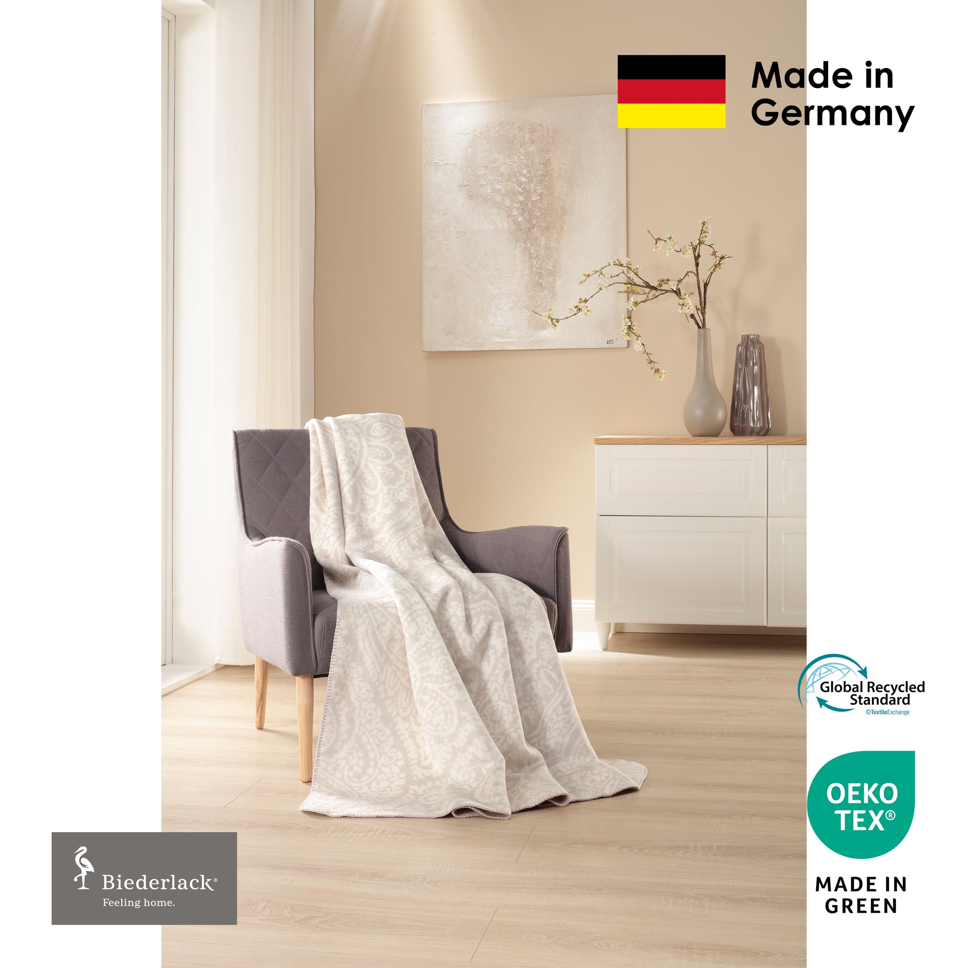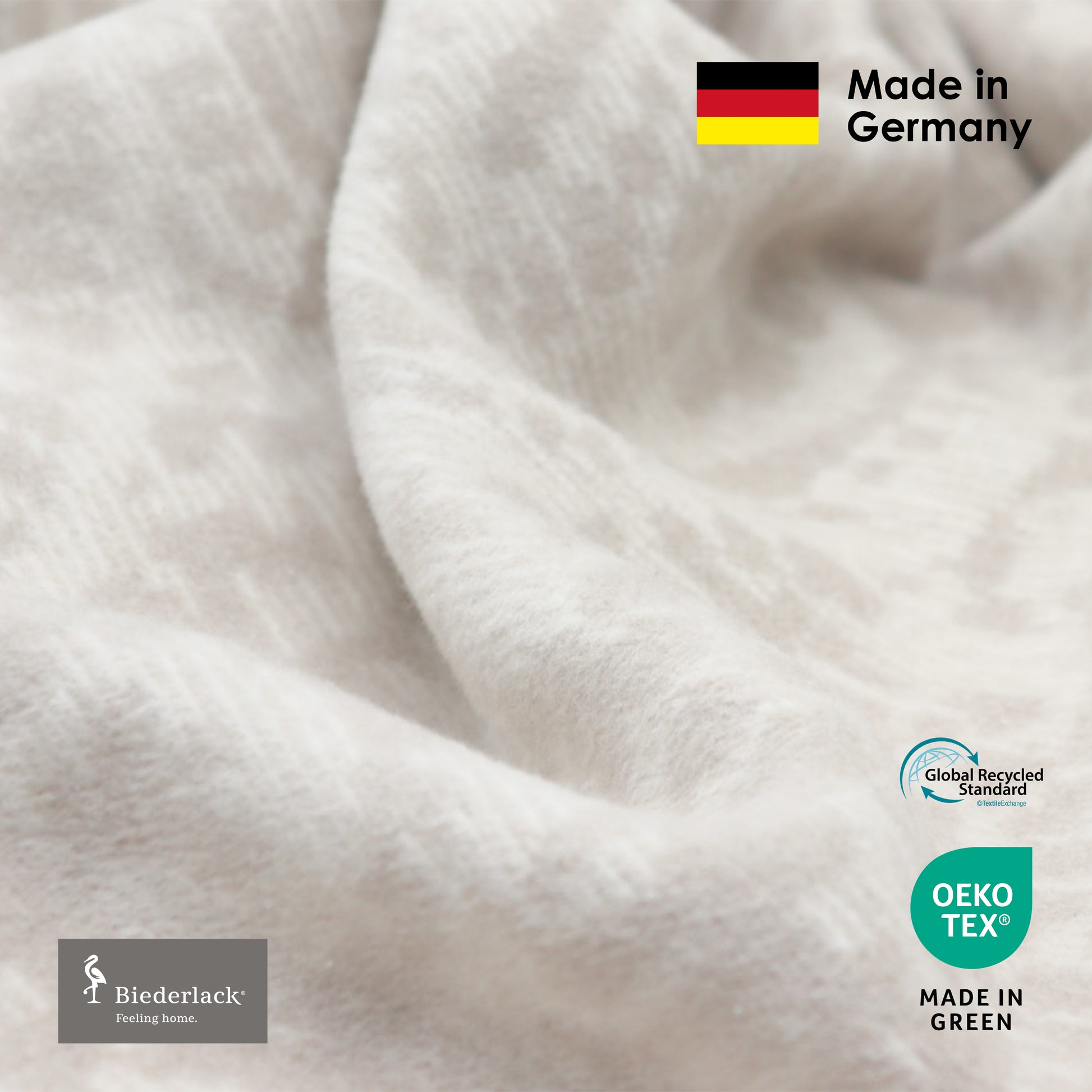 We start from raw materials, cotton, fibers, etc., slowly twist them into yarn and then weave and shear them into a blanket that customers can enjoy. All processes are completed at the Greven factory in Germany, Biederlack ensures the best quality and protects the environment.