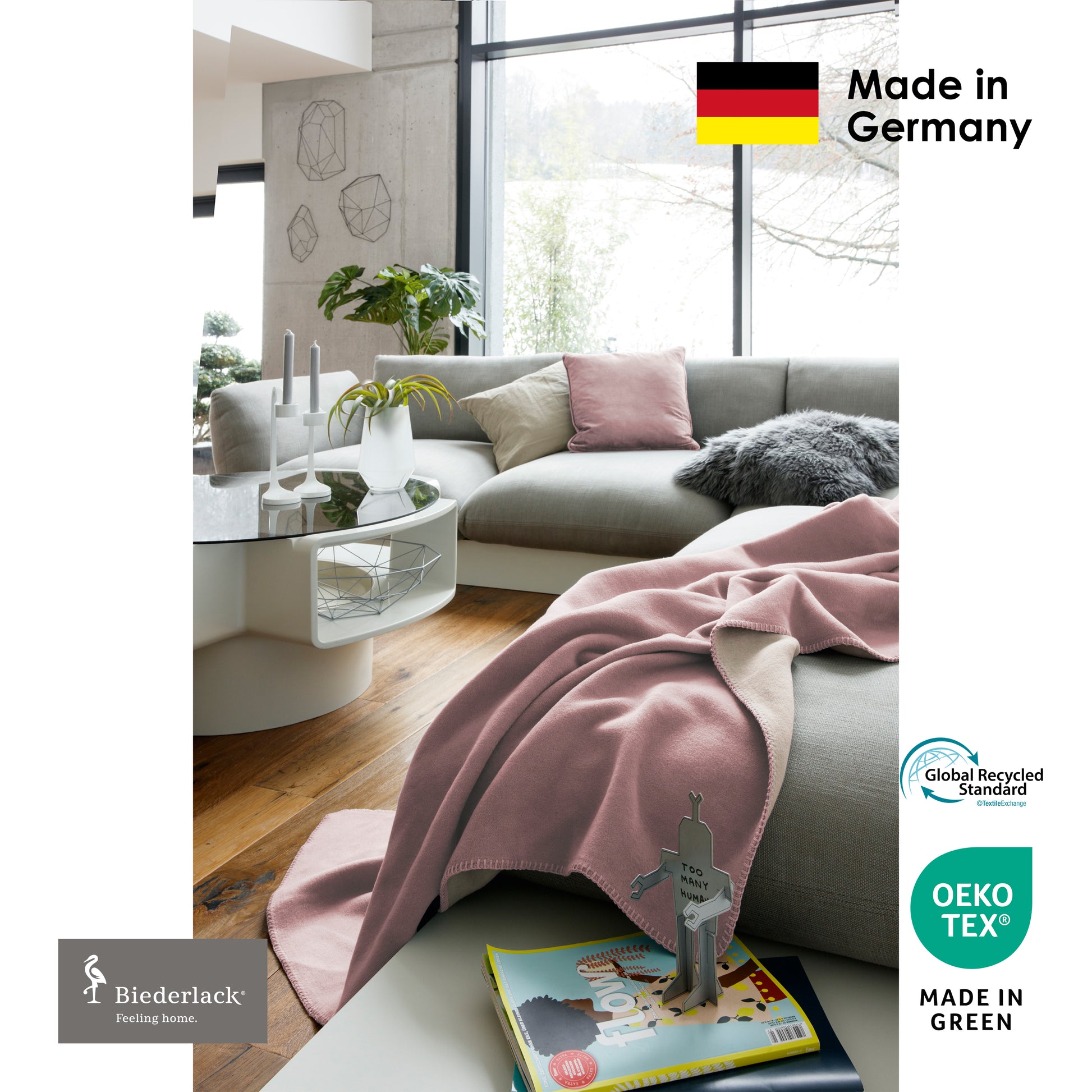 We start from raw materials, cotton, fibers, etc., slowly twist them into yarn and then weave and shear them into a blanket that customers can enjoy. All processes are completed at the Greven factory in Germany, Biederlack ensures the best quality and protects the environment.
