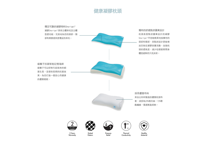 Alma Vivens® pillow is made by a stable Smartgel®, an unique dotted pattern design features a layer of Smartgel® molded seamlessly to memory foam that gently conforms and massage to your head and neck. It provides a better pressure relief and more extraordinary comfortable support.