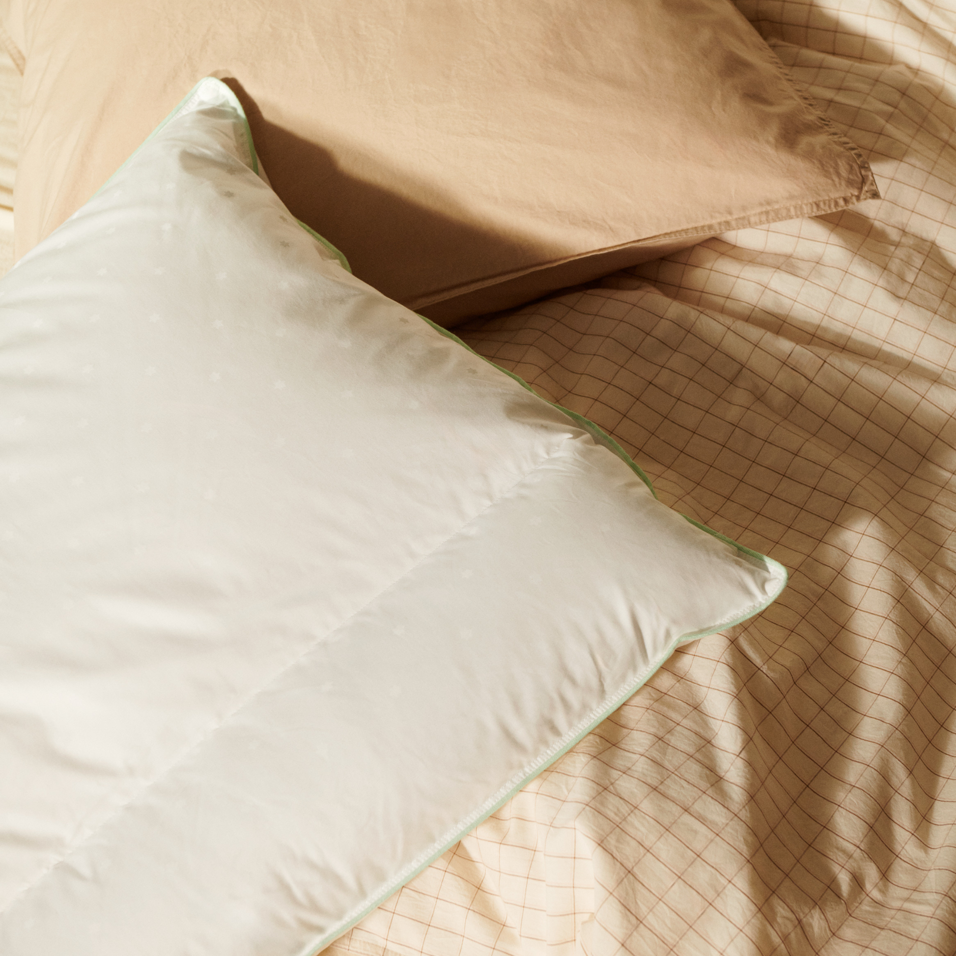 The Fossflakes Pillow is easy to maintain and fluff back into shape. Machine wash at 60°C and tumble-dry at a low setting <60°C. Remove your duvet promptly after the tumble dry cycle completes. Avoid fabric softener and enzyme based detergents when washing Fossflakes product as these may compromise the properties of the filling.
