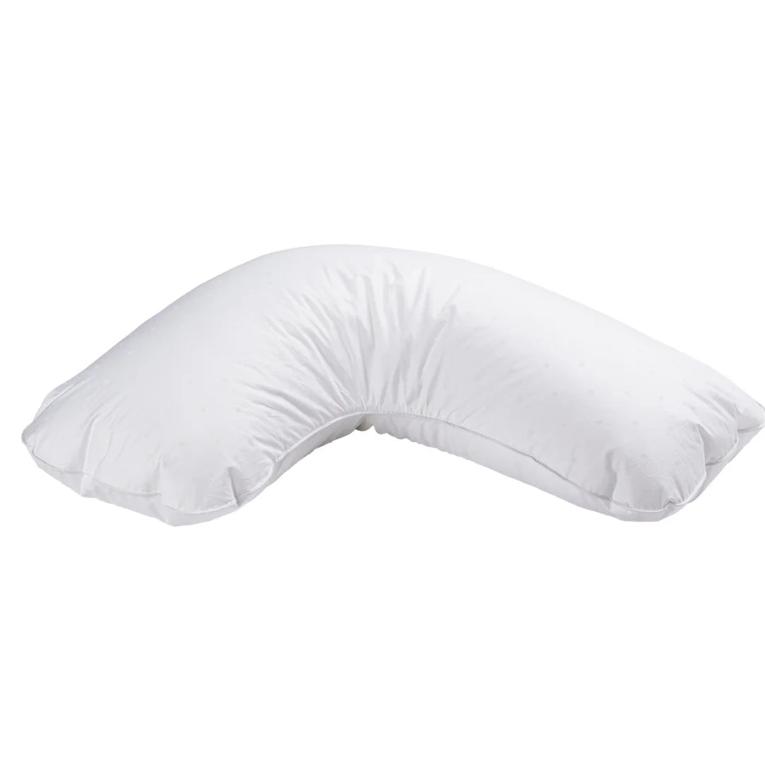 The pillow’s curvature as an ergonomic L-shape cradles your head, shoulder and neck, reducing any strain on your neck and upper back. Perfect support helps align your neck and spine correctly.