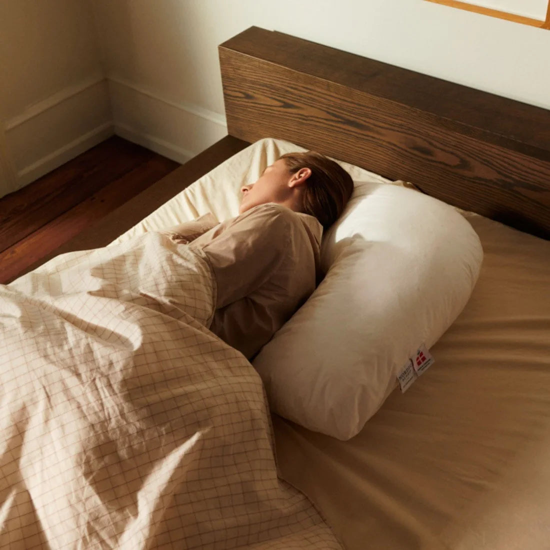The Fossflakes Pillow is easy to maintain and fluff back into shape. Machine wash at 60°C and tumble-dry at a low setting <60°C. Remove your duvet promptly after the tumble dry cycle completes. Avoid fabric softener and enzyme based detergents when washing Fossflakes product as these may compromise the properties of the filling.
