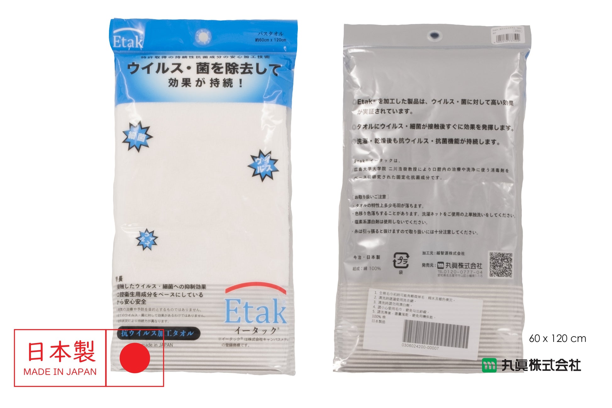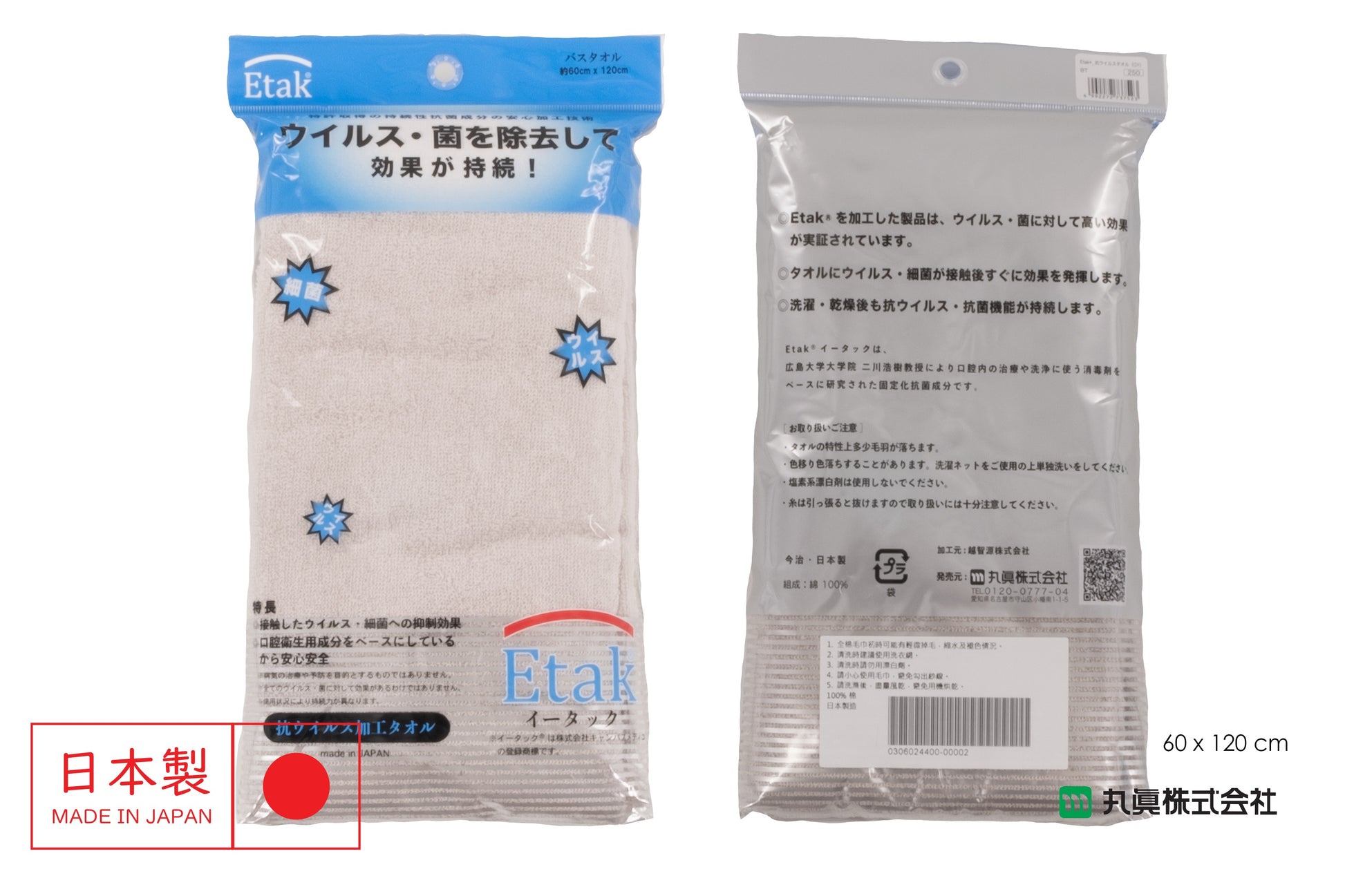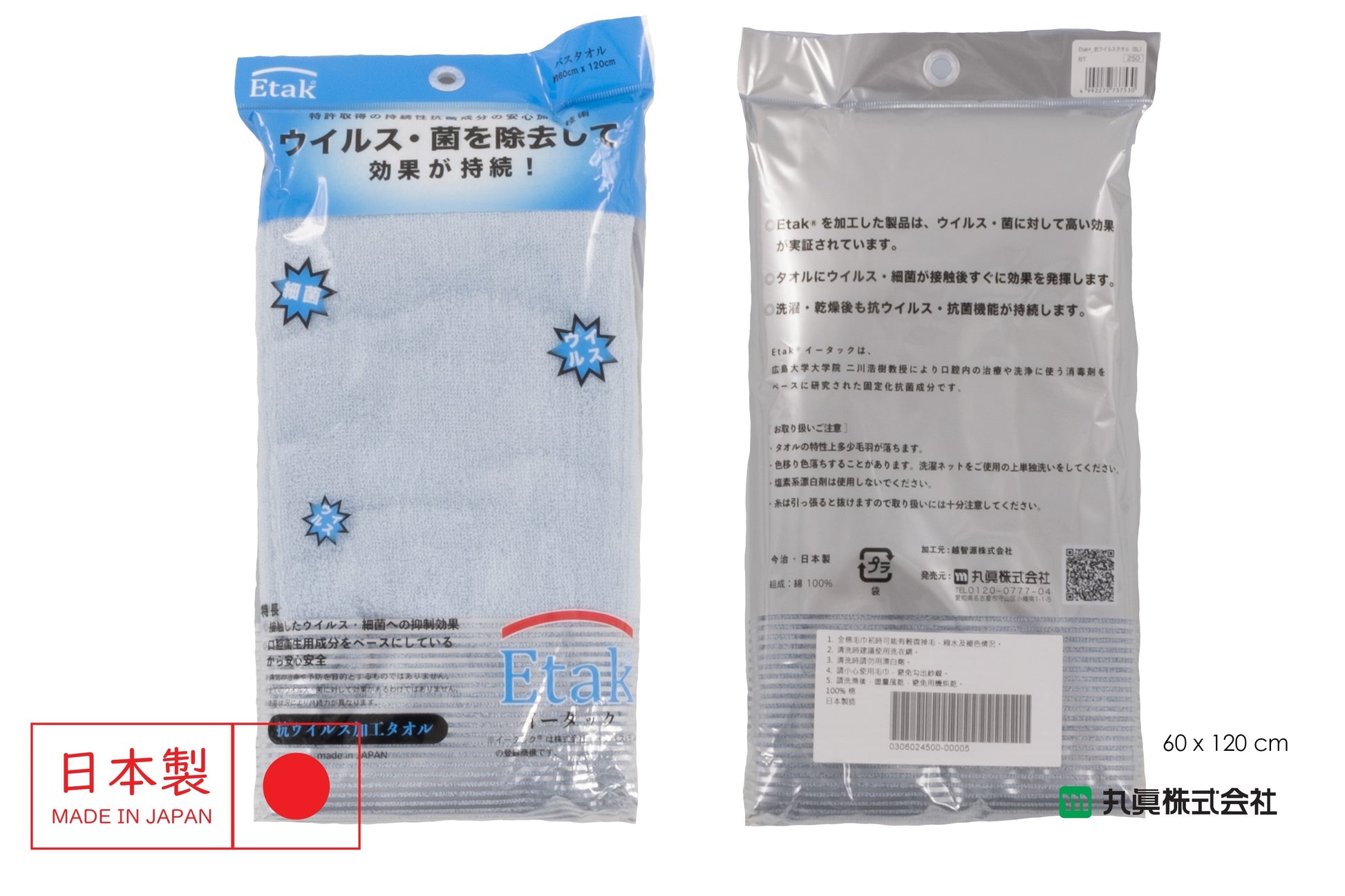 This towel is treated with Etak® when woven, have good antiviral and antimicrobial effect.