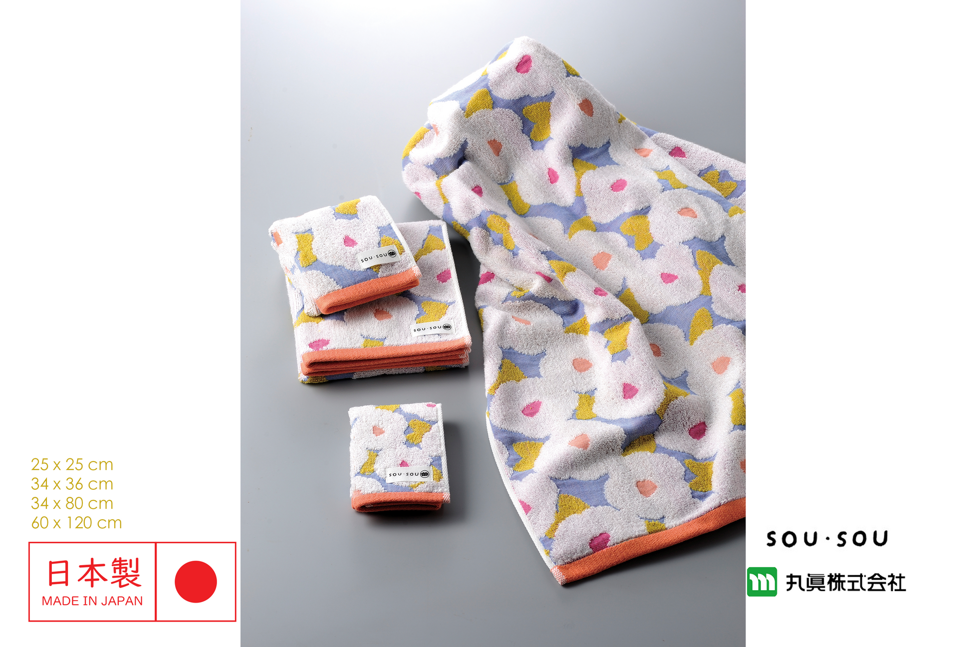 SOU·SOU combine the design of camellia and jacquard on the towel. The towel is made by Imabari Japan, a standard of high-quality Japanese towel, which is highly absorbent and can be used safely by children and babies.
