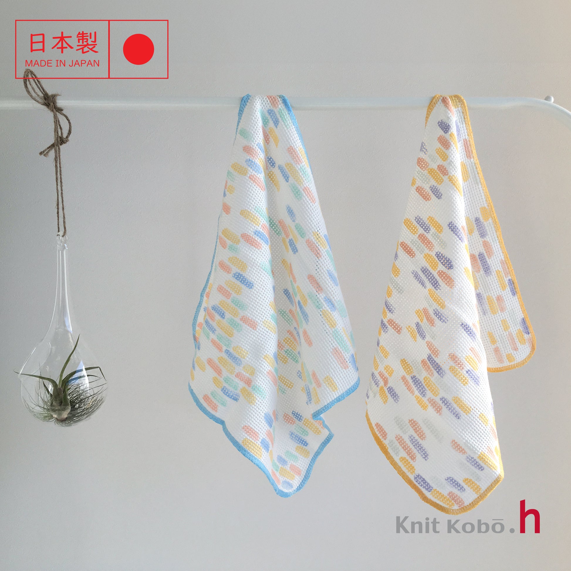 This rough fabric was originally created for export to European and American department stores after the war. Before urethane sponges were available, this rough fabric was used as a substitute for dishwashing sponges. The stiffness of the fabric's texture comes from this traditional use for cleaning dishes.