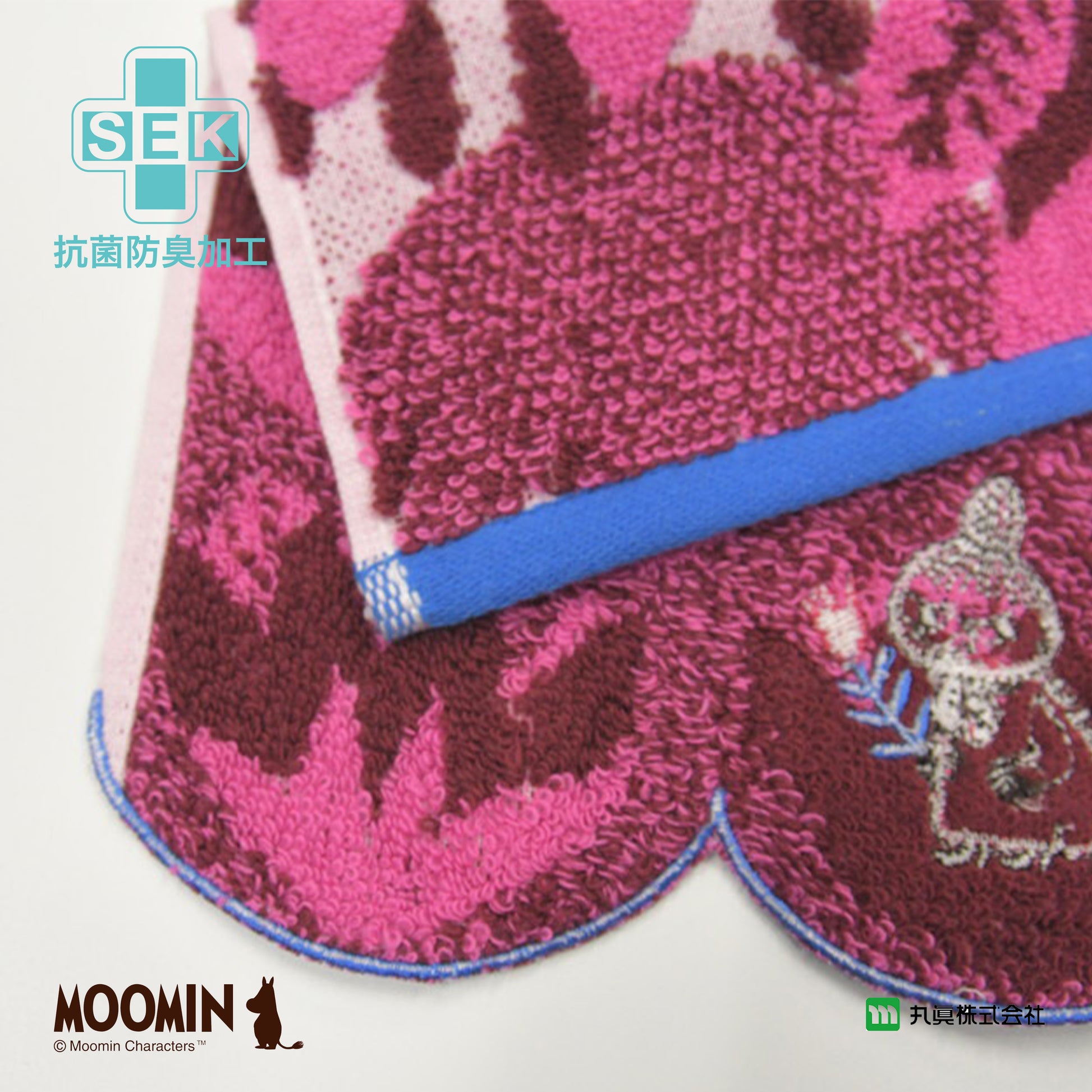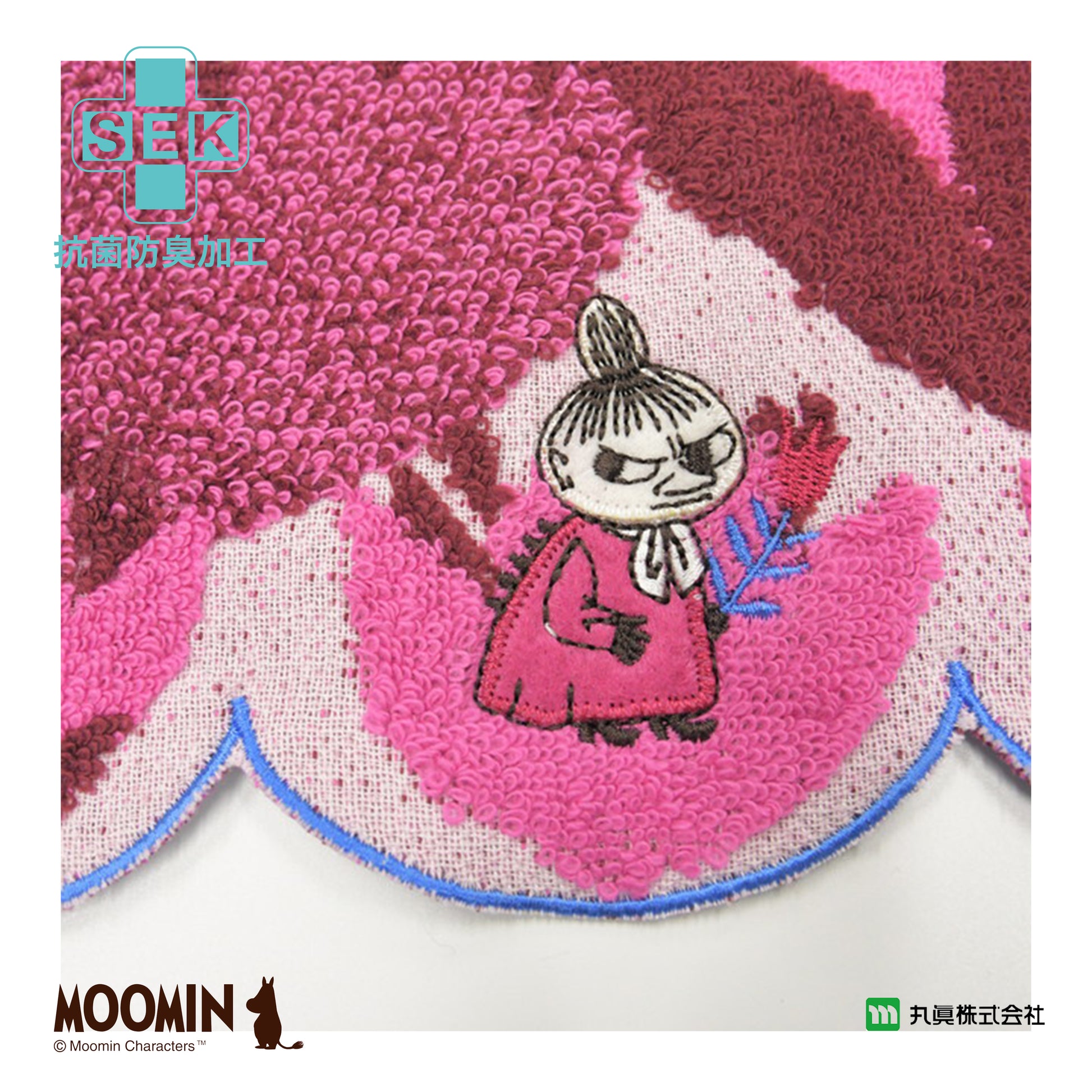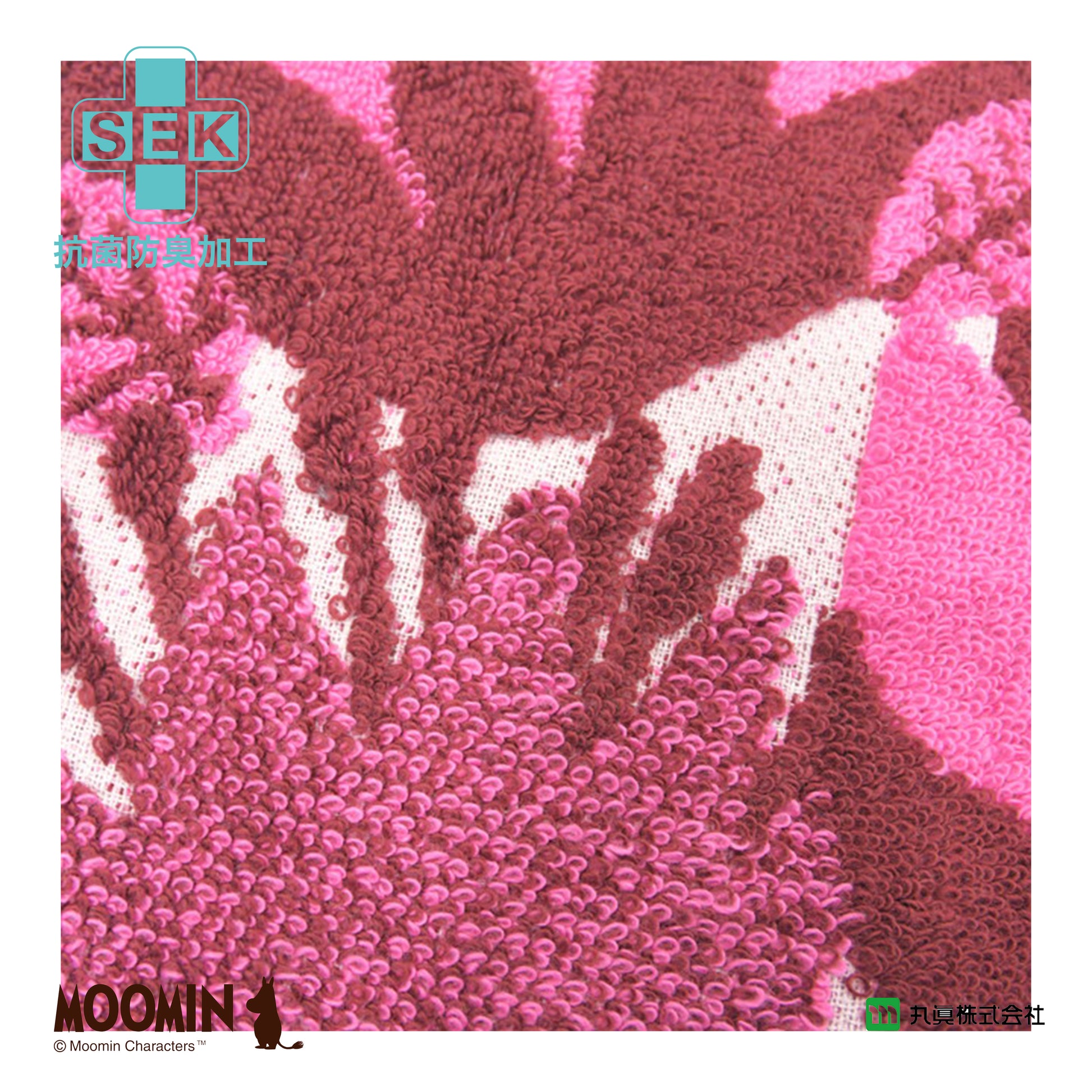 A gorgeous towel with a bold arrangement of flower motifs that appear in Moomin.
