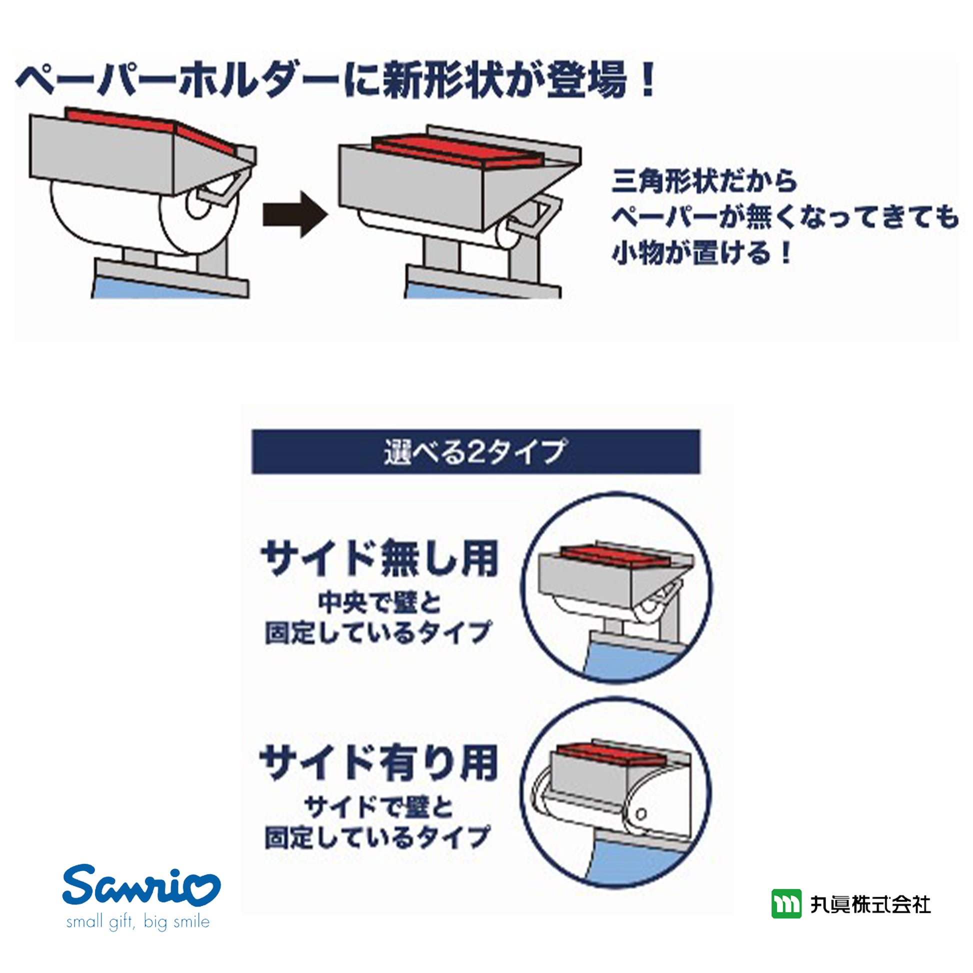 Our Sanrio® Toilet Paper Holder is a cute and practical addition to your bathroom. It can hold your phone and small items on top, making your time at home more comfortable. Compatible with side-less types of toilet paper holders.