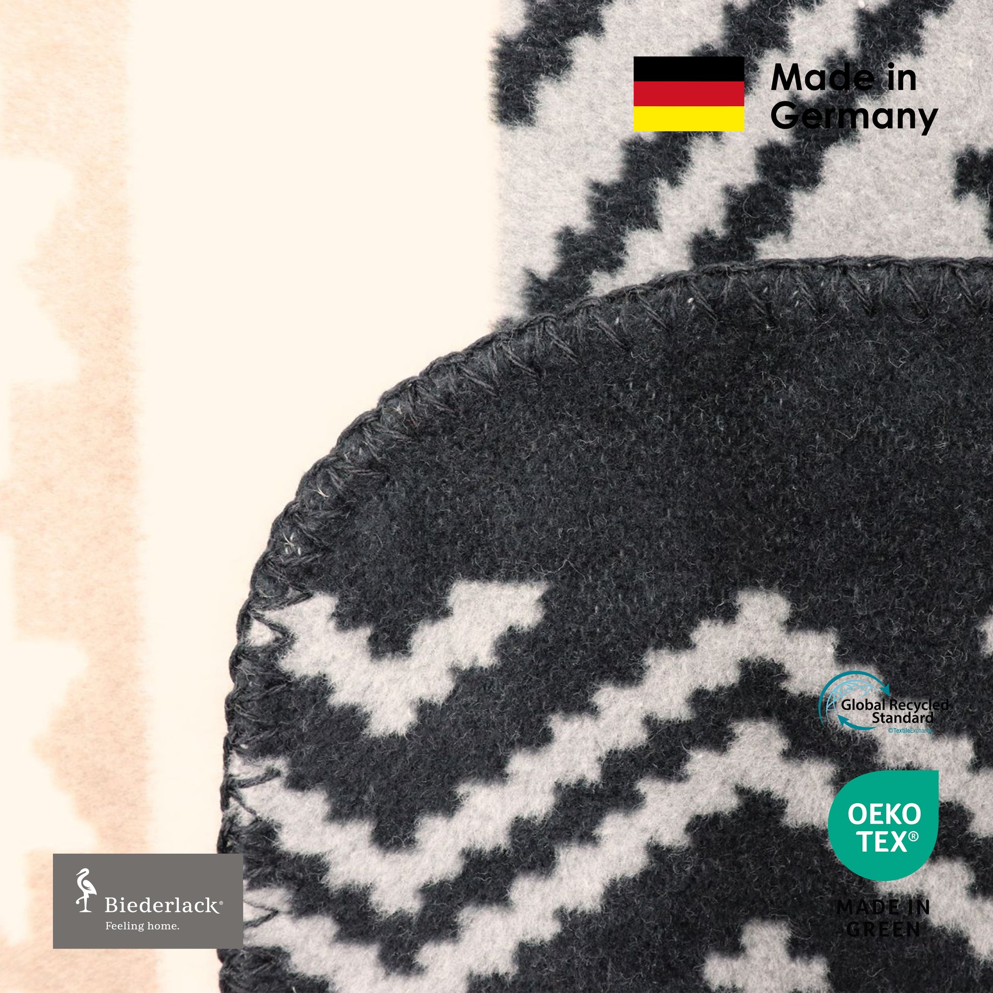 邊緣以手工縫合的裝飾線收口,令毛毯更具手作感與層次感。「Winter Braid」於德國 Greven 製造,並通過 OEKO-TEX Made in Green 及全球回收標準(GRS)認證,是兼具保暖、外觀與可持續理念的冬季蓋毯。