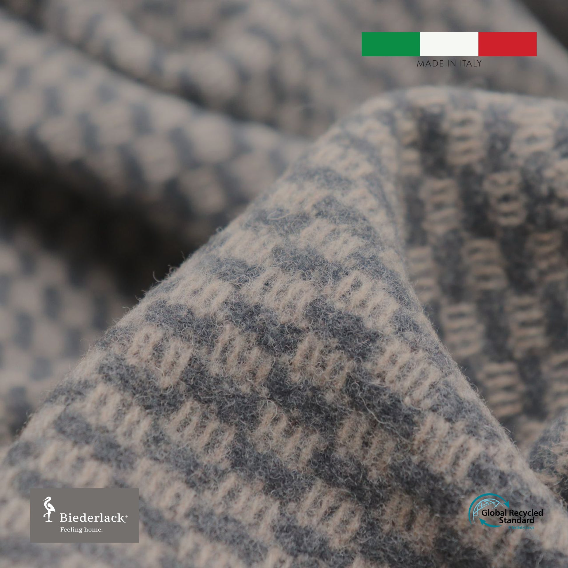 邊位以精緻縫線收口,令整體更顯簡潔高雅。產品於意大利按照嚴格標準製造,並通過全球回收標準(GRS)認證,兼顧可持續性與高質感。