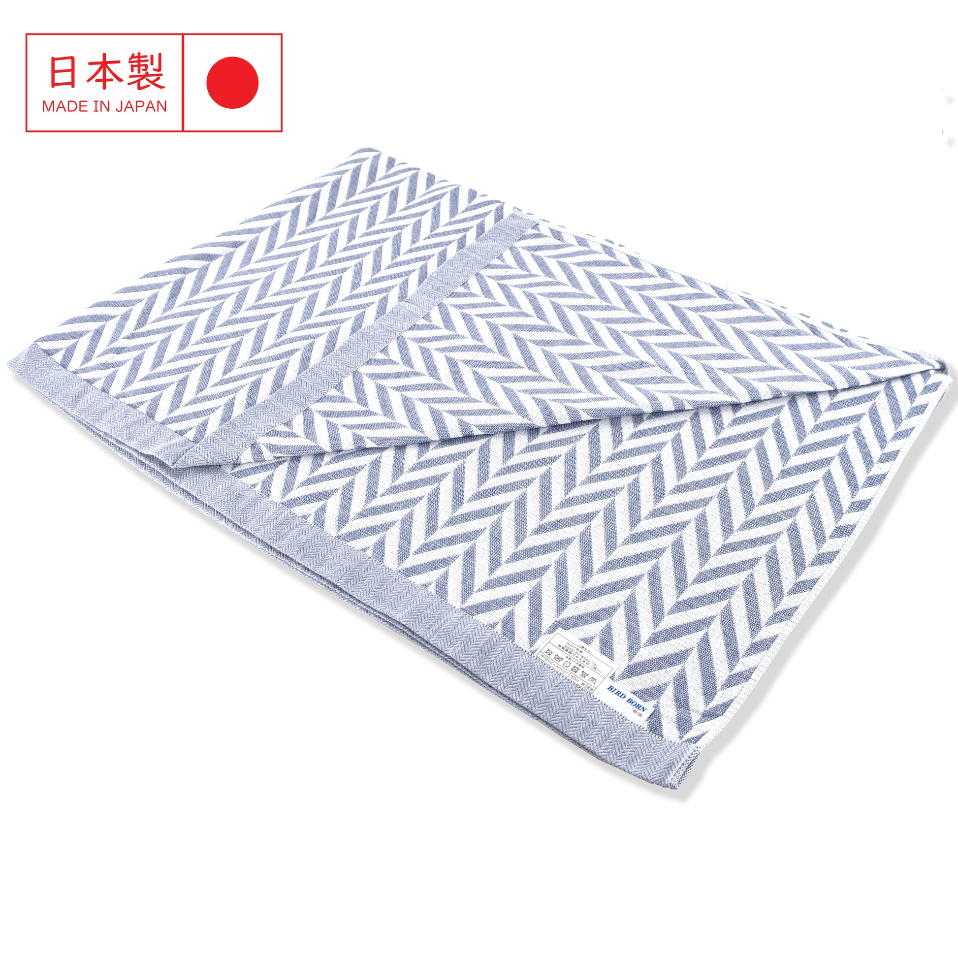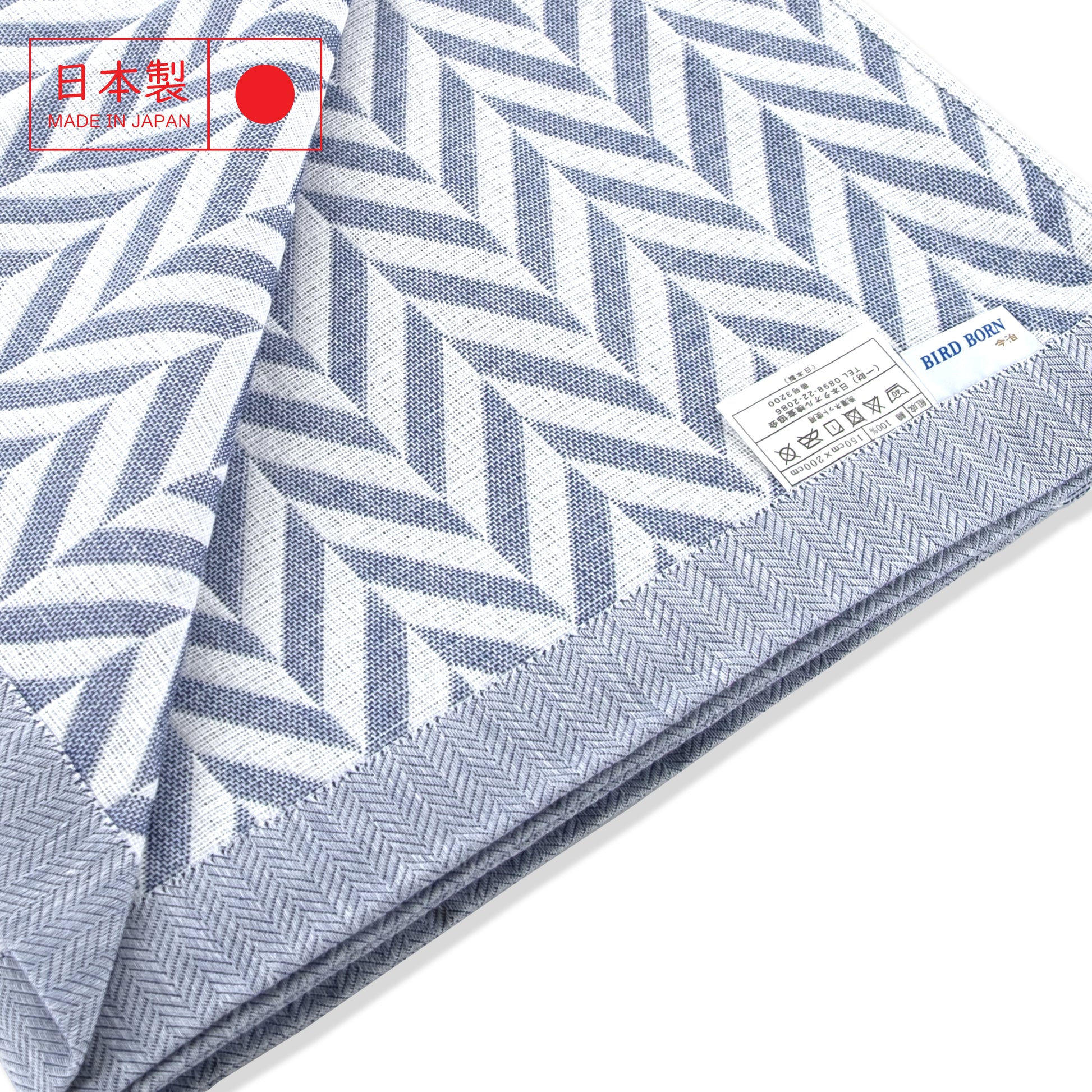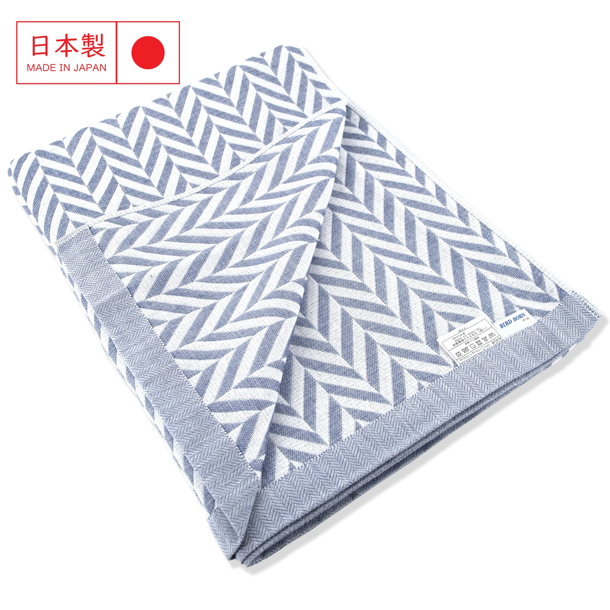 這款由日本今治出品的 人字紋純棉毛巾被,以柔和的藍色為主調,透過細膩的 提花織法呈現人字紋(Chevron) 圖案,展現日系簡約與居家質感的完美結合。