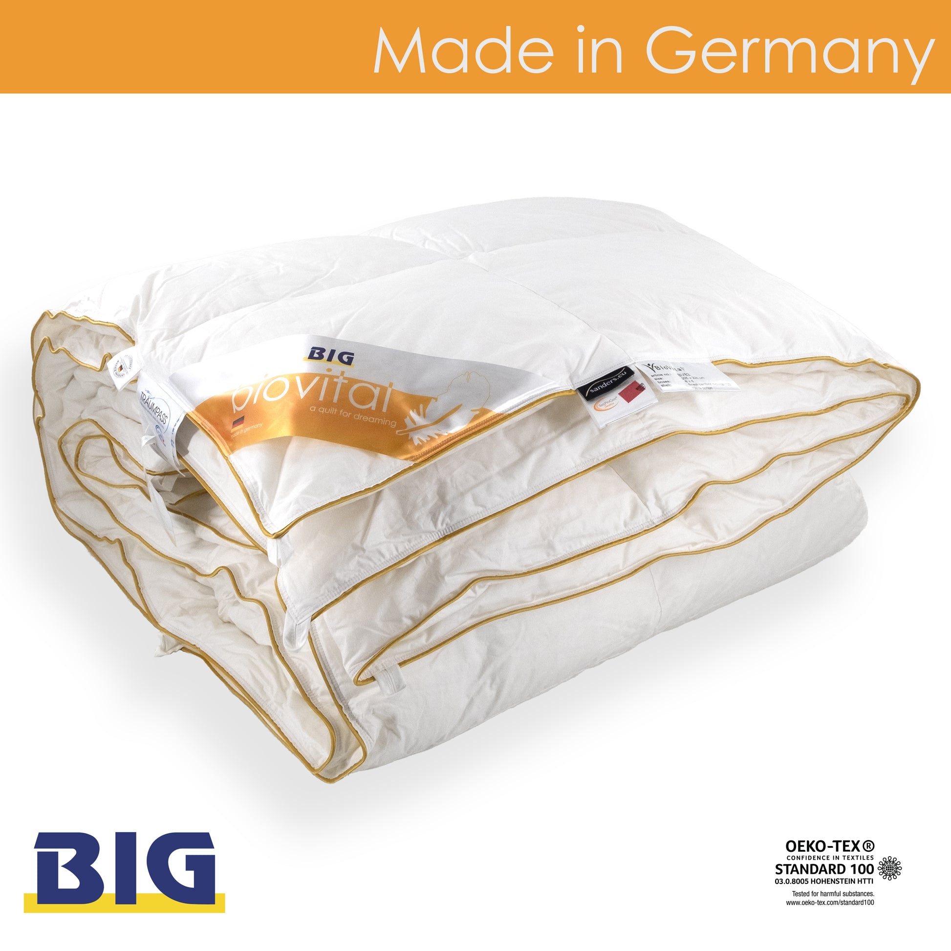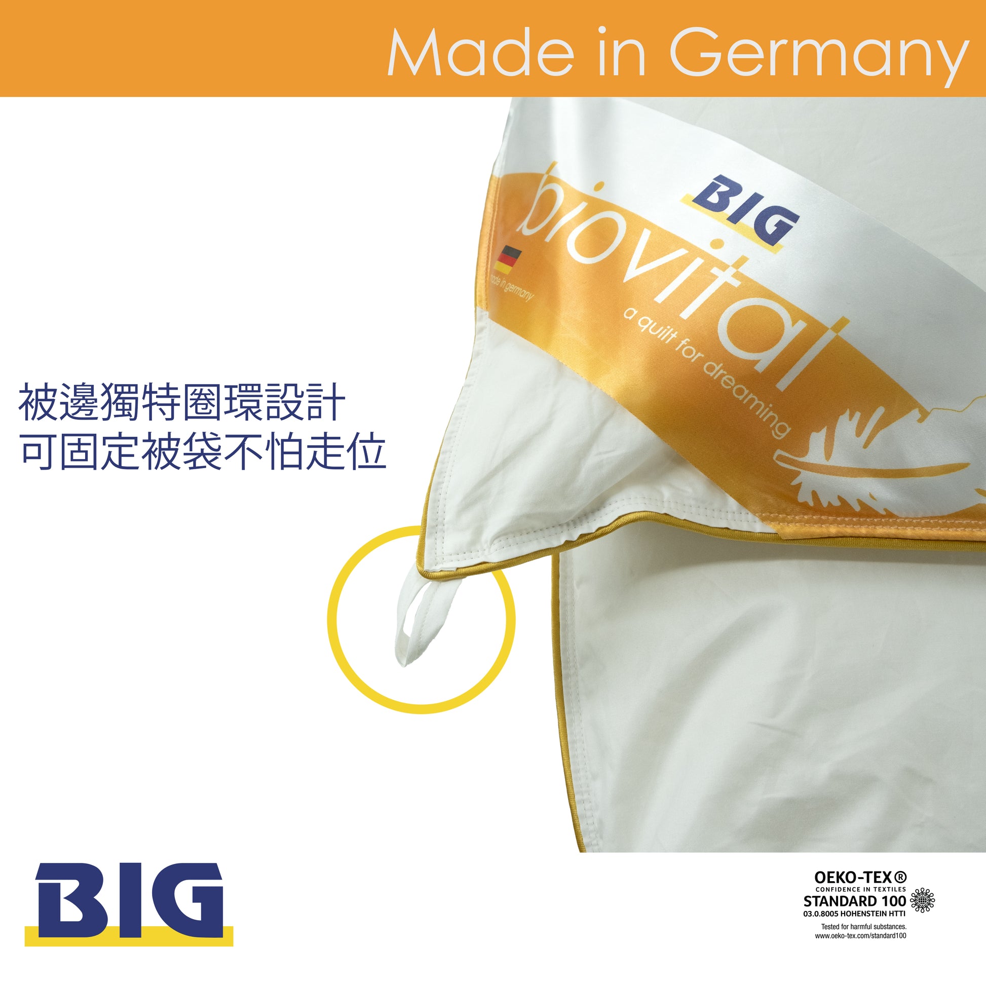 BIG Biovital 90%歐洲白鵝羽絨四季被用上一級歐洲白鵝羽絨製造,輕薄透氣,配合Biovital全棉防絨布面,含有可可巴油,維他明E及蘆薈精華,能帶給您舒適及柔軟感覺。